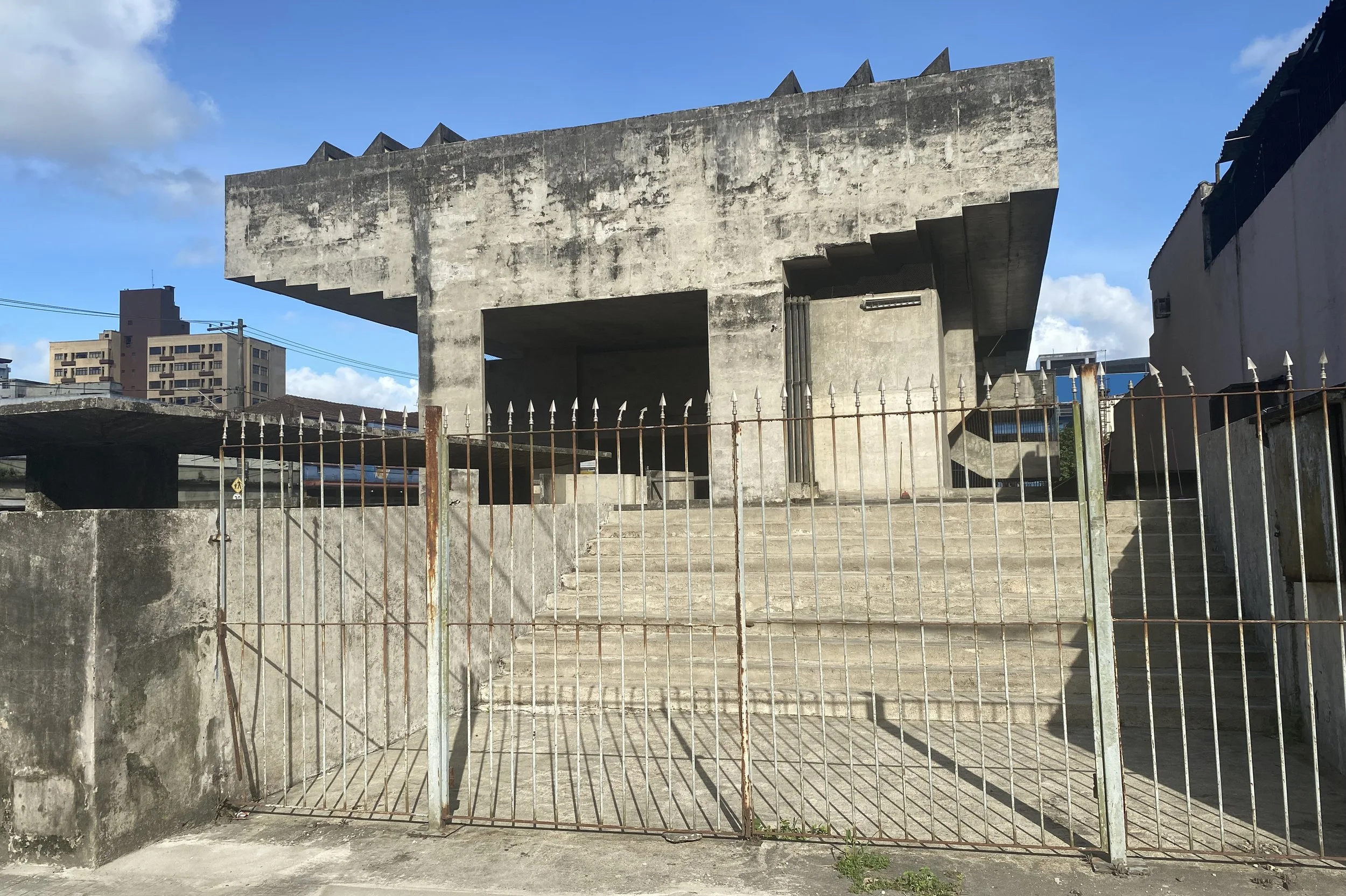 I was walking down around the streets of the old historic quarter of Santos, imagining what the town must have looked like at the peak of the coffee boom when the air was filled with the aroma of roasting beans and the streets filled with busy suited businessmen, streets vendors, dockers and stevedores loading the ships bound for Europe. It’s former prosperity can be seen in the grand neo-classical town hall in the Praça Mauá, but the coffee barons are long dead and buried and the surrounding streets have largely fallen into ruin with rows of colonial era buildings waiting for someone to invest. There are a few survivors like the tiled chrome Carioca coffee house that has been serving espressos for ever, and down the road sits the Pelé Museum opposite the cast iron Santos-Sao Paulo train station built by British engineers over a century ago. The tourist tram trundles on in an attempt to rekindle former glories and there are plans afoot to regenerate the area, but it has struggled to survive the three-pronged assault of economic decline, shopping malls and the pandemic. That said there is no shortage of money to be had. A stone’s throw away from the centre lies the biggest container port in Latin America home also to colossal ten storey cruise ships. Everyone is waiting for the torch paper to be lit and to see Santos docks transformed in the same way as in Rio and Belem. I turn the corner past one of the ubiquitous cafes serving deep fried savoury snacks and sugar cane juice, and there like an abandoned interstellar cargo ship sits a fantastic example of Brasilian brutalism. For the admirers of reinforced concrete, Brasil is a treasure house. There is much to choose from. Niemeyer, Lucio Costa, the béton brut of Paulo Mendes da Rocha, and probably my favourite, the wonderful ramped open plan Faculty of Architecture and Urbanism at the University of Sao Paulo designed by Vilanova Artigas. The gem above is smaller in scale but built in the same era. A municipal school by Decio Tozzi, it sits on an elevated platform one and a half metres above the street. Composed of a sequence of concrete porticos and ‘amphitheatre’ classrooms, it won the Bienal Internacional de Arquitetura in 1967 and has now been listed. The Town Council have promised to restore and reopen it, but as yet, nothing has happened. Like many other concrete buildings from this era it is at risk, as much from public disinterest as the appetites of property speculators for whom modern architectural history is of little interest.