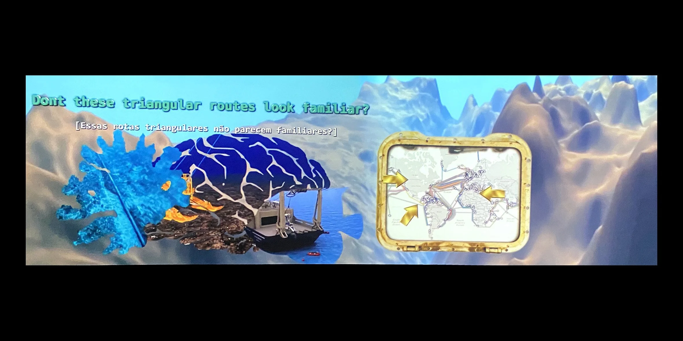 I was a reluctant newcomer to social media, when, prompted by friends, I launched Postcards from Brasil two and half years ago; “Nobody ever reads your stuff, it’s either in expensive academic books, boring journals or obscure pamphlets that can’t be found. Why don’t you write a blog?” So, in I plunged only to discover that nobody was ‘visiting,’ apparently because I hadn’t set up an ‘instagram alert’. I now have both and thus began my curious journey into the cult like world of likes and followers. Perhaps the most remarkable thing for me about the whole experience is the geographical analytics on the Square Space website. This revealed something remarkable. Although my last major academic work, the Routledge Companion to Architecture, Literature and the City reached an international audience, my blog has now been read by over two thousand unique visitors in ninety different countries. The league table is topped by China, the UK, Brazil and the US, with solid performances by France, Germany, Mexico, Jamaica, Italy, Singapore, Turkey, Russia and Vietnam. So here is a big thankyou to all my readers. - The images are taken from Deep Down Tidal a video installation by the French Guyanese artist-activist Tabita Rezaire at the 2025 São Paulo exhibition “Historias da Ecologia”. It shows how the submarine fibre optic cables that underpin modern communication networks mimic the routes that defined the triangular trade and colonial exploitation.