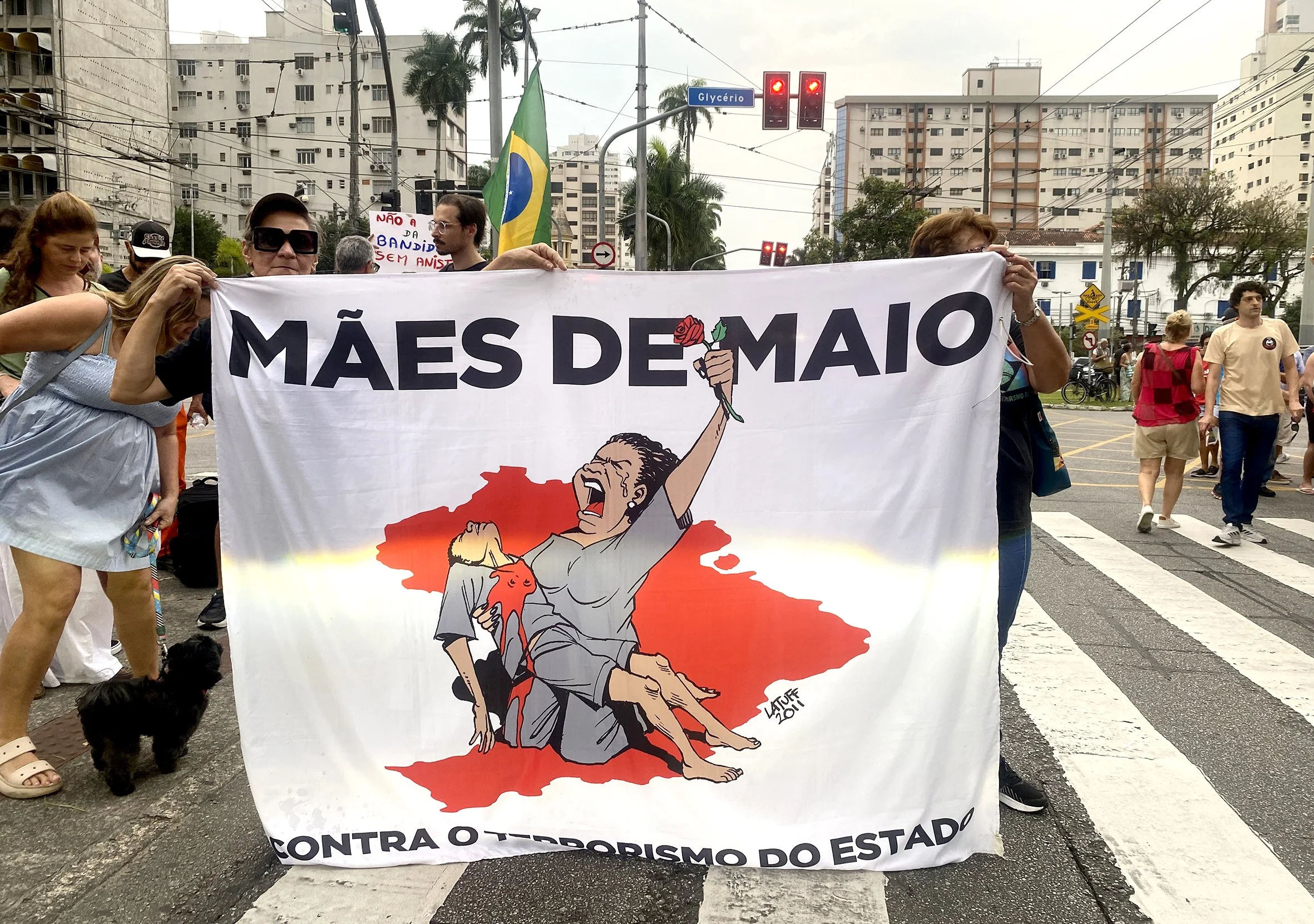 Santos. Sunday, September the 21st, 2025. In thirty-three cities across the length and breadth of Brasil, there were stirrings of revolt, as vast numbers gave up a lazy afternoon to demonstrate in the streets. There were two principal catalysts behind the protests. First, widespread anger at the campaign orchestrated by the far right and evangelical church to grant a general amnesty to everyone involved in the violent assault on Congress in January 2023. Second, indignation at the vote last week by a majority of Deputies to amend the constitution in a way that would potentially protect them from criminal prosecution. Despite the ongoing and determined attempt by the far right to subvert democracy, a clear majority of the population supports the Supreme Court’s judgement that Bolsonaro and his allies are guilty of plotting a coup d'état and of being involved in a criminal conspiracy. The evidence is overwhelming and they could all face long jail sentences. Equally, there has been an almost universal condemnation of the proposal to change the constitution, referred to as the PEC da Blindagem. In a world in which gangster capitalism and mafia states have become normalised, politicians behaving in their own self-interest shocks no one. But by any measure, the abandonment of any pretence to the democratic process in the PEC da Blindagem was extraordinary. It proposed that with the exception of acts of terrorism, trafficking and torture, federal deputies and senators could only be arrested and prosecuted by the Supreme Court (STF) if their colleagues in Congress agreed by an absolute majority in a secret ballot. Self-evidently corrupt, the scheme was designed to protect State and Federal Deputies from the dozens of Federal Police and Supreme Court investigations into the embezzlement of public money. Today the proposal has been unanimously denounced by the Senate that argued that it would have opened the doors of Congress to organised crime and destroyed the legitimacy of Parliament. The Senate also clearly bowed to the collective display of public outrage both on the streets and in social media. I suspect however that this is not the end of the story. It is not the first time that the far right has attempted a juridical coup. They tried before in 2001, and then, as now, they were defeated by the strength of popular protest. This is why demonstrations like the one on Sunday are so important. They offer hope that this time round the rules have changed. The formerly red city of Santos was never going to be able to mobilise the size of crowds as seen in São Paulo and Rio de Janeiro, but there was a great turnout, and importantly from across the political spectrum. Lots of banners, speeches, home-made placards such as, “Whoever defends an amnesty for coup mongers and protection for elected bandits is betraying democracy,” and spontaneous songs: “Sem anistia, sem perdão, todos as golpistas para a prisão.” (No amnesty, no pardon, jail all the coup plotters.) Here are a few images from the day as we marched down the Avenida Anna Costa to the Praça da Independência. The first photo is of me with close family friends. You might note the T-Shirt, “Santista Antifascista.” It is odd to think, that in the eyes of US law enforcement officers, wearing this probably makes me a terrorist.